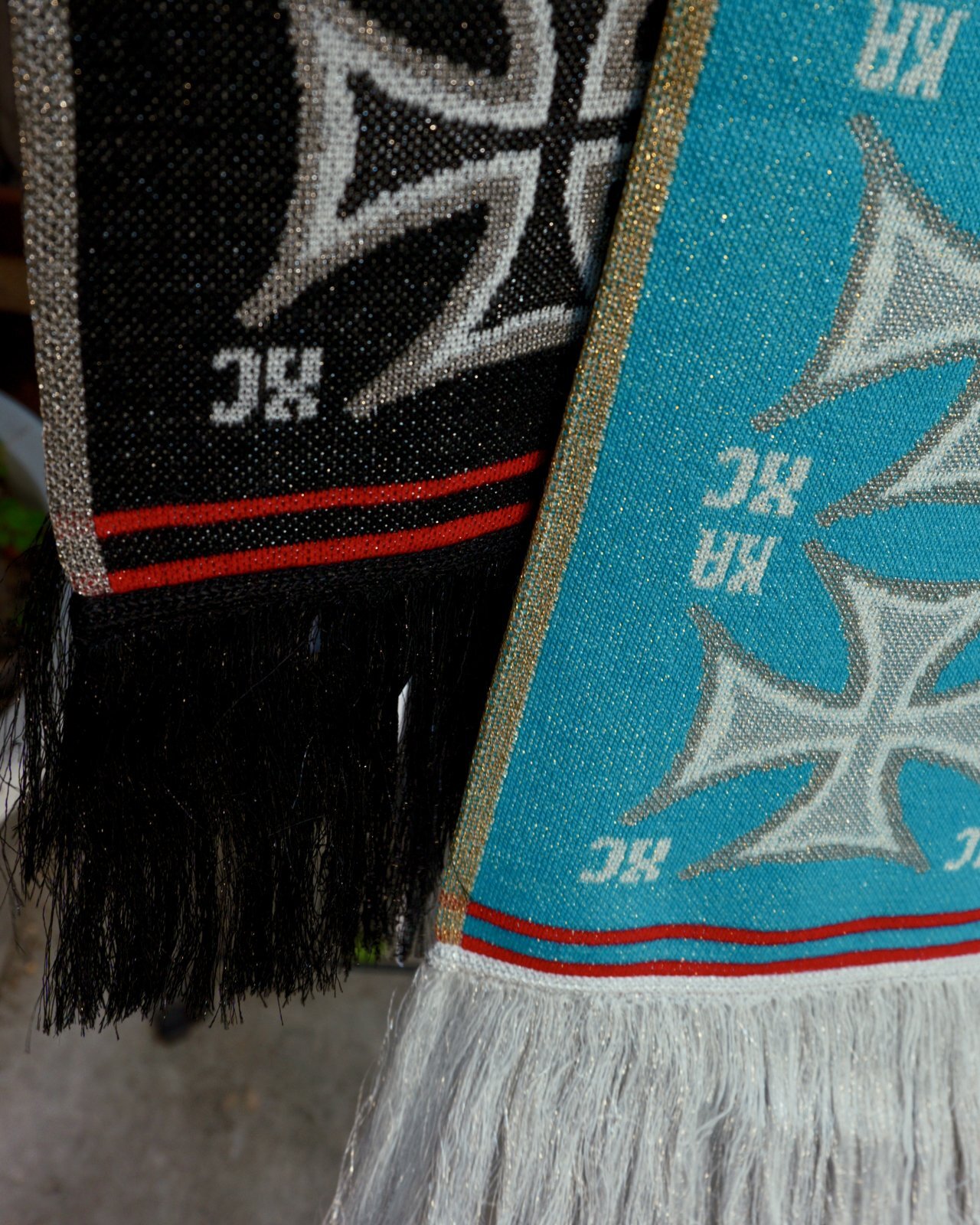 【LES SIX(レシス)】Short Crossed Scarf/ Blue