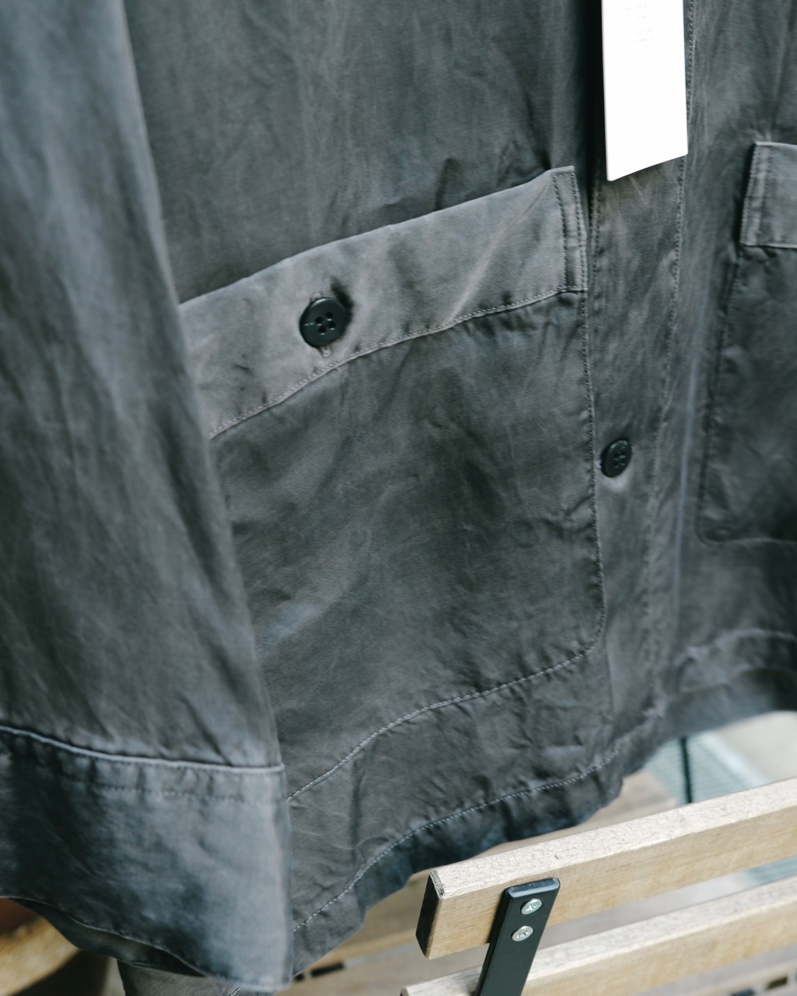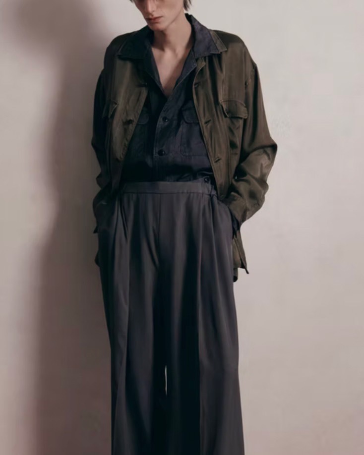 洗いを施し、パッカリングやムラ感を演出しながらもフィブリルのプリっとした質感で品のある印象に仕上げています。