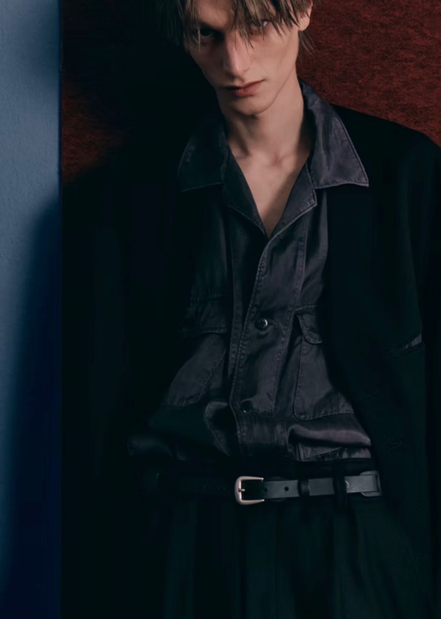 【ANTHEM A(アンセムエー)】PIGMENT CUPRO OPEN COLLAR SHIRTS/ CHARCOAL