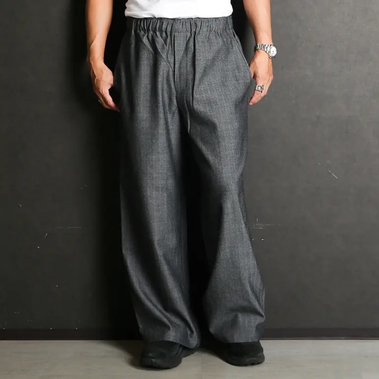 ウェスト内側にはドローコードを配し、ワタリから裾までワイドなシルエットで非常に穿きやすいパンツとなっています。