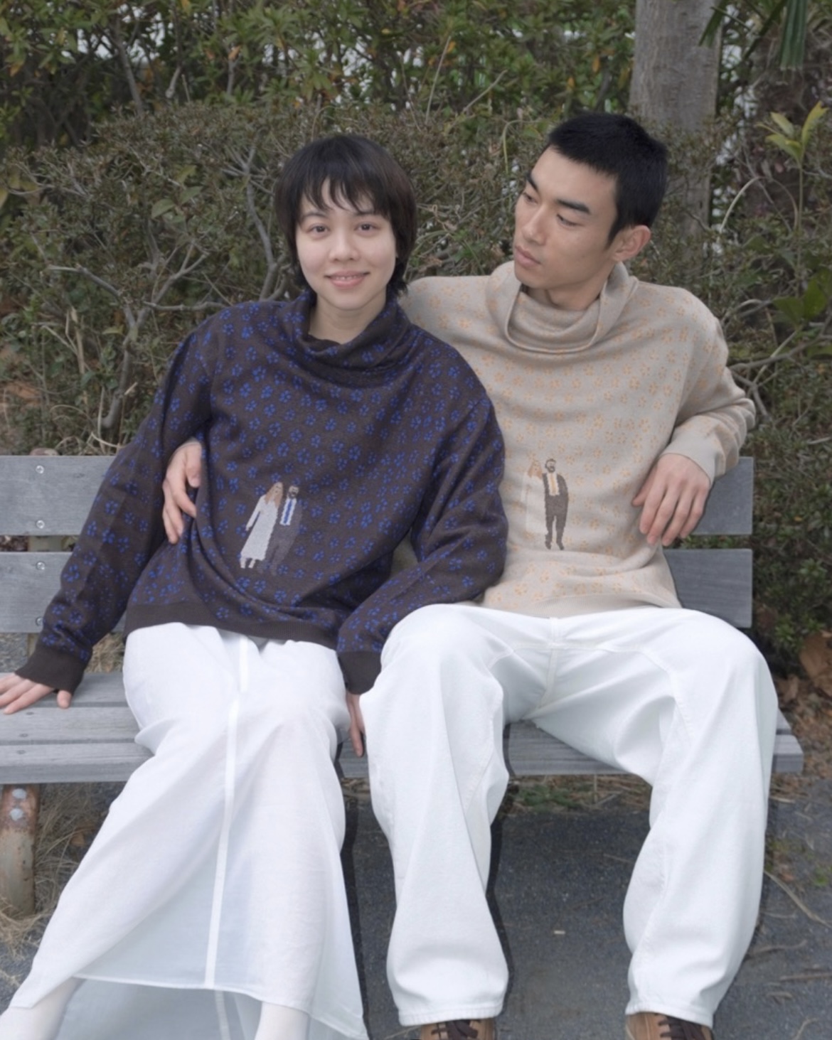 あの最高な空間、そして愛に満ち溢れた二人をニットに閉じ込めたいと思いこのデザインになりました。