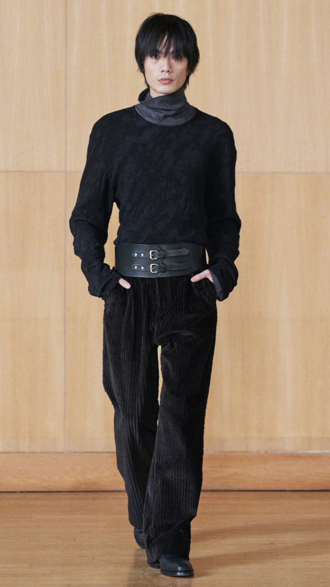 リラックスしたワイドストレートシルエットで、YKKのジップフライやホーンボタンなど、洗練された雰囲気に仕立てられています。