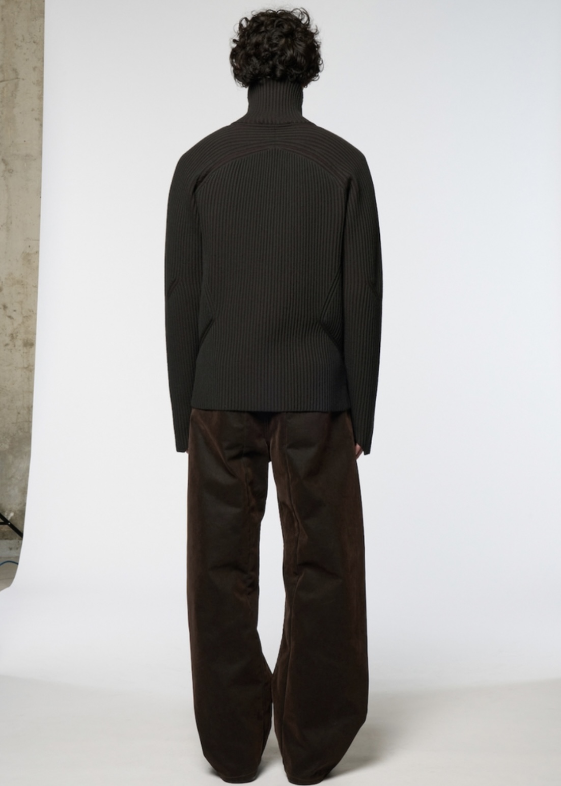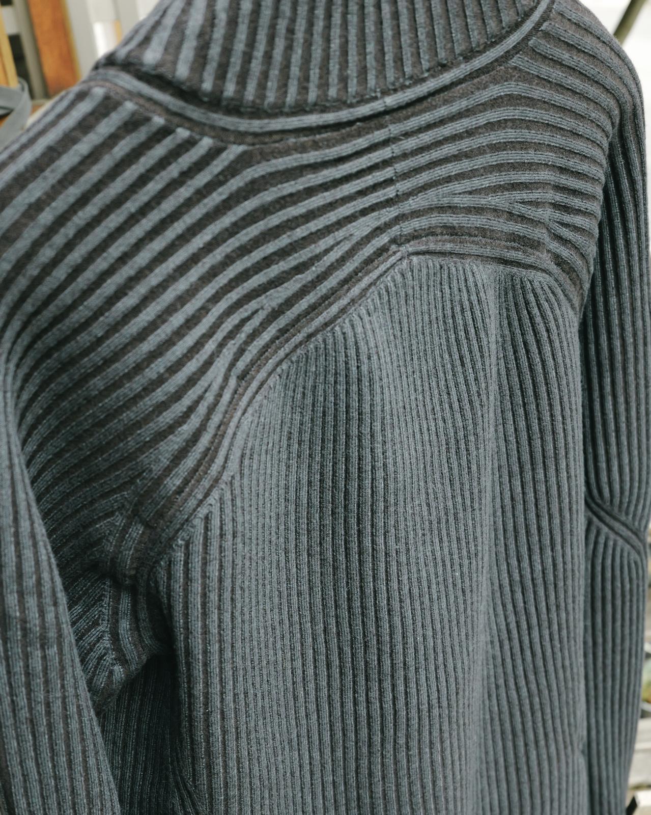 【Omar Afridi(オマールアフリディ)】ARTICULATED DRIVERS KNIT/ DARK GREY DARK BROWN