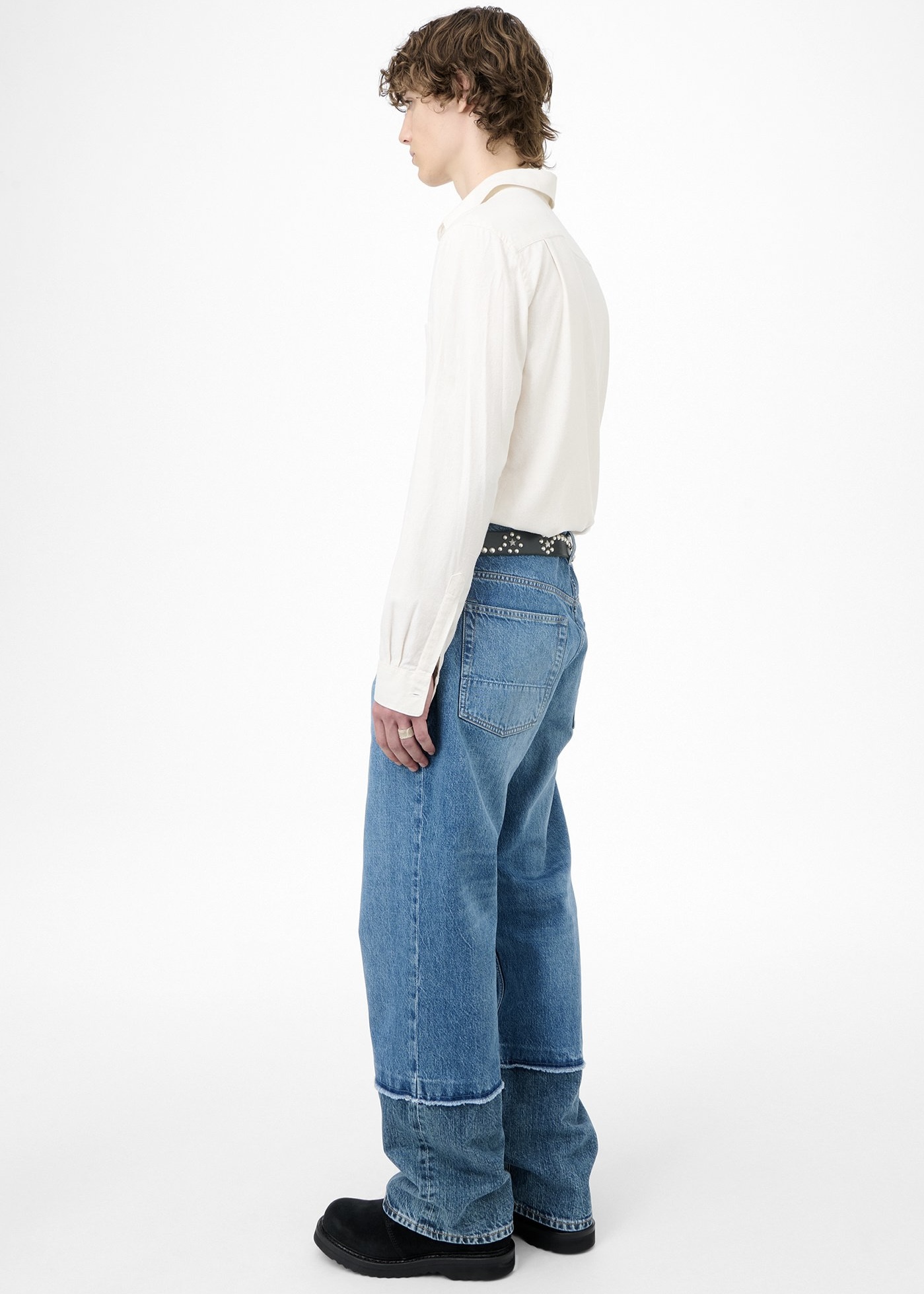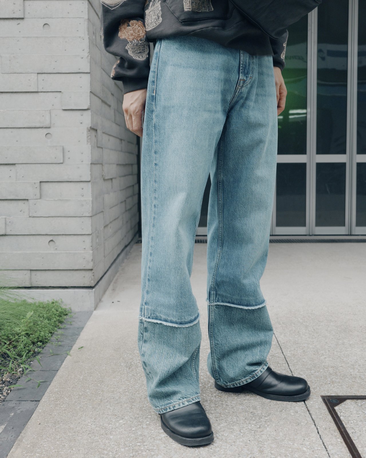 生地にはイタリア製の上質なデニムを使用しており、膝下で素材を切り返しています。