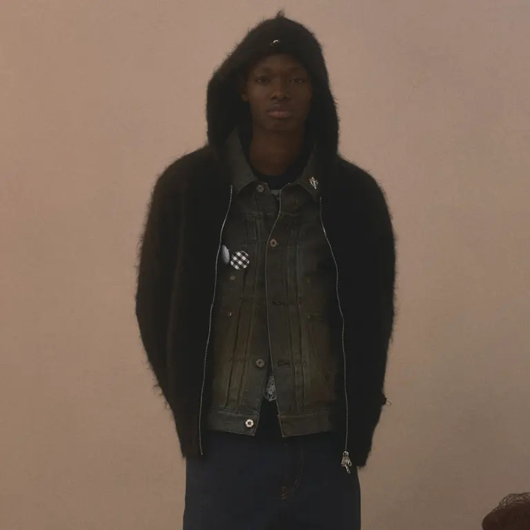 モヘア混の柔らかい糸を採用し製作を行なった本作。抜群の保温性と軽さを兼ね備えたニットフーディーです。