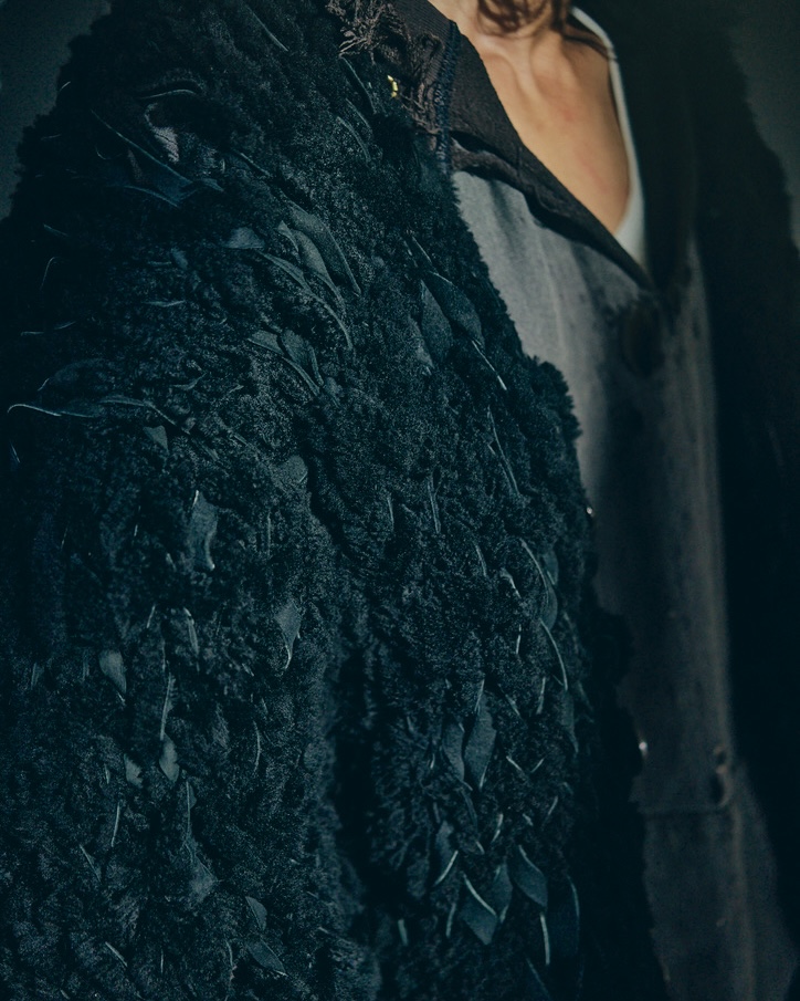 ムートンのアイテムを生産した際に出る端切れ(はぎれ)を無駄にする事なく活用出来ないかという考えのもと誕生したムートンカーディガン"チャーリー"。