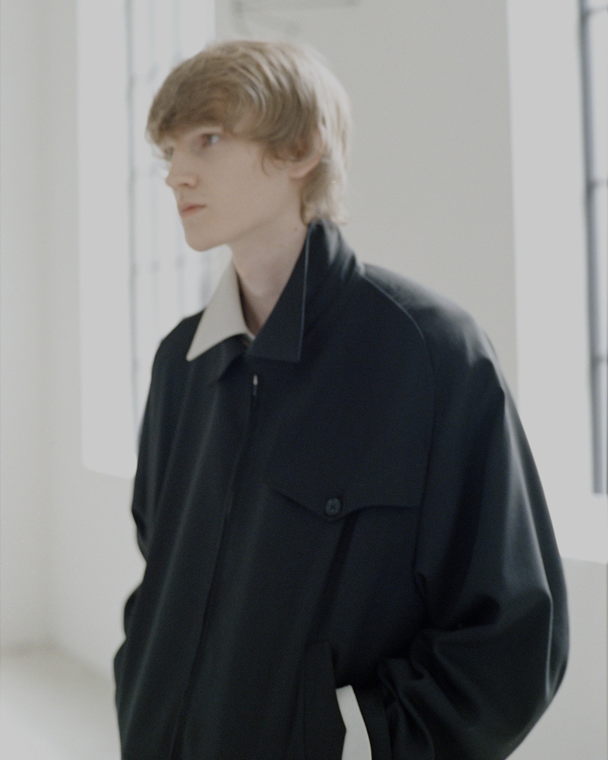 朱子織のウール素材を使用した、 総裏仕立てのジップブルゾンです。